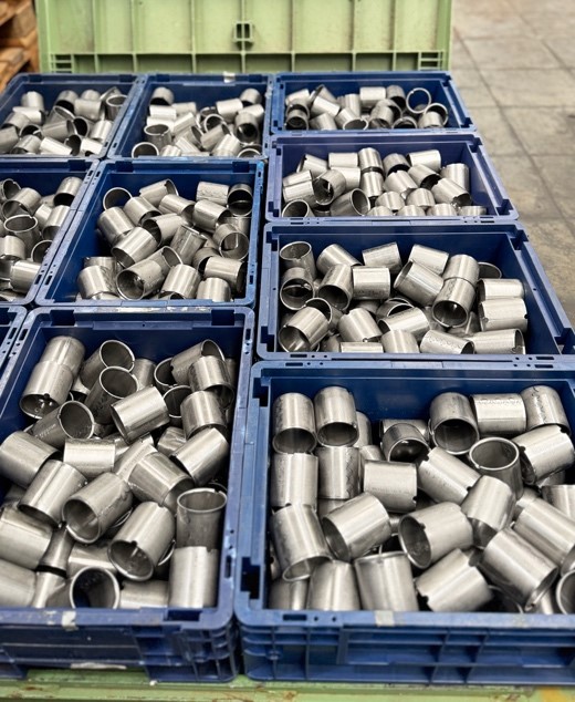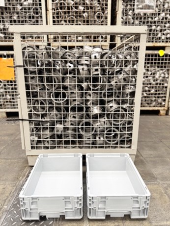 Statt Gitterboxen, in die rund 1.800 Stück der Achsrohre passen, wünscht sich der Kunde künftig Kleinverpackungen mit rund 34 Stück pro Kiste.